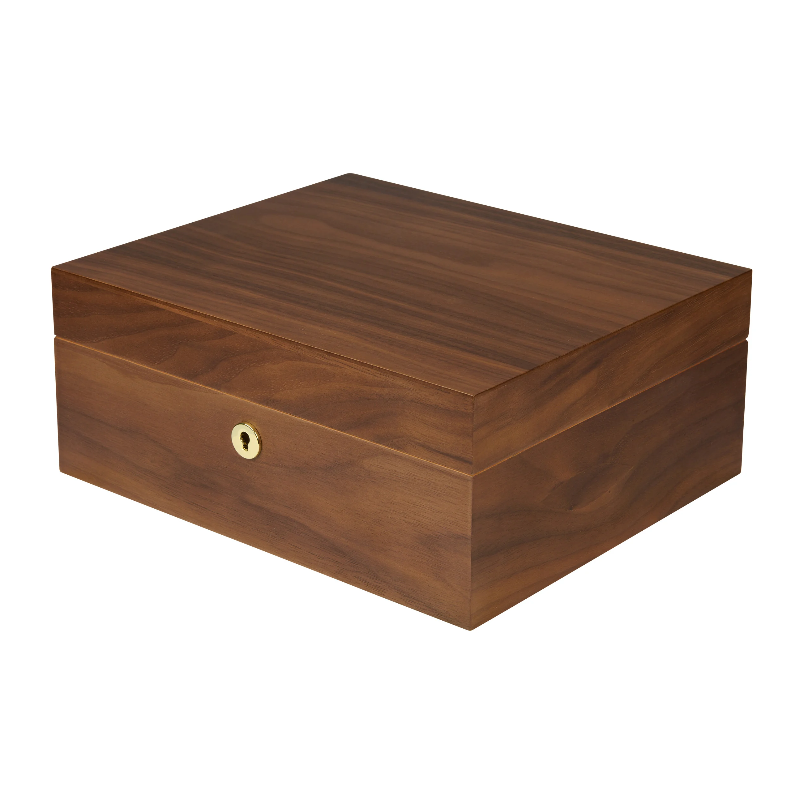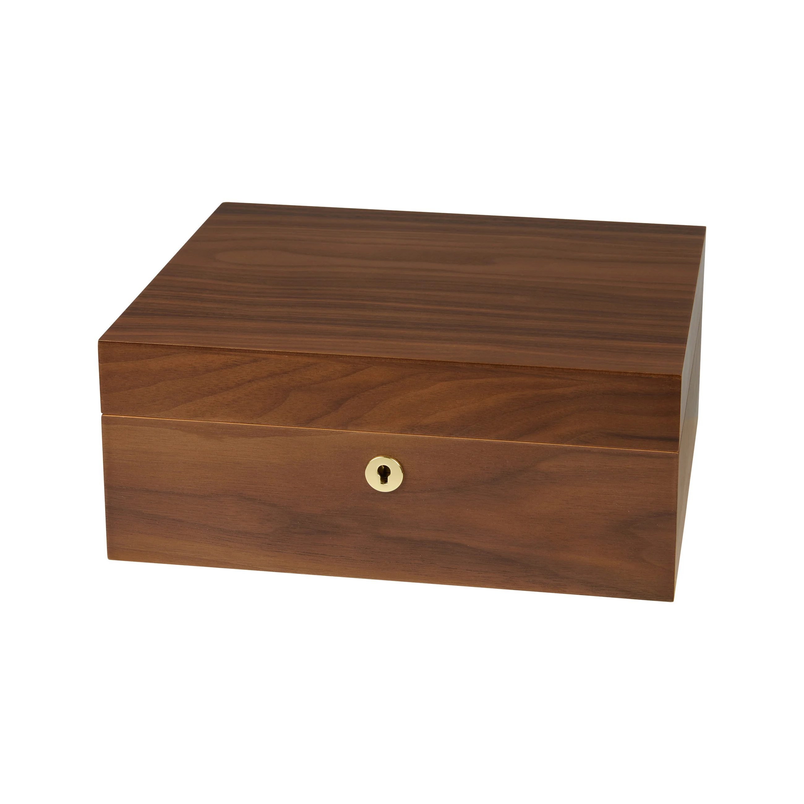 Das Walnussholz überzeugt durch seine charakteristische Maserung mit warmbraunen bis dunkelbraunen Farbtönen. Dank seiner warmen und natürlichen Ausstrahlung fügt sich der Humidor harmonisch in nahezu jedes Ambiente ein. Humidore der Größe Medium fassen bis zu 75 Zigarren und bieten damit ausreichend Platz für Ihre Zigarrensammlung.