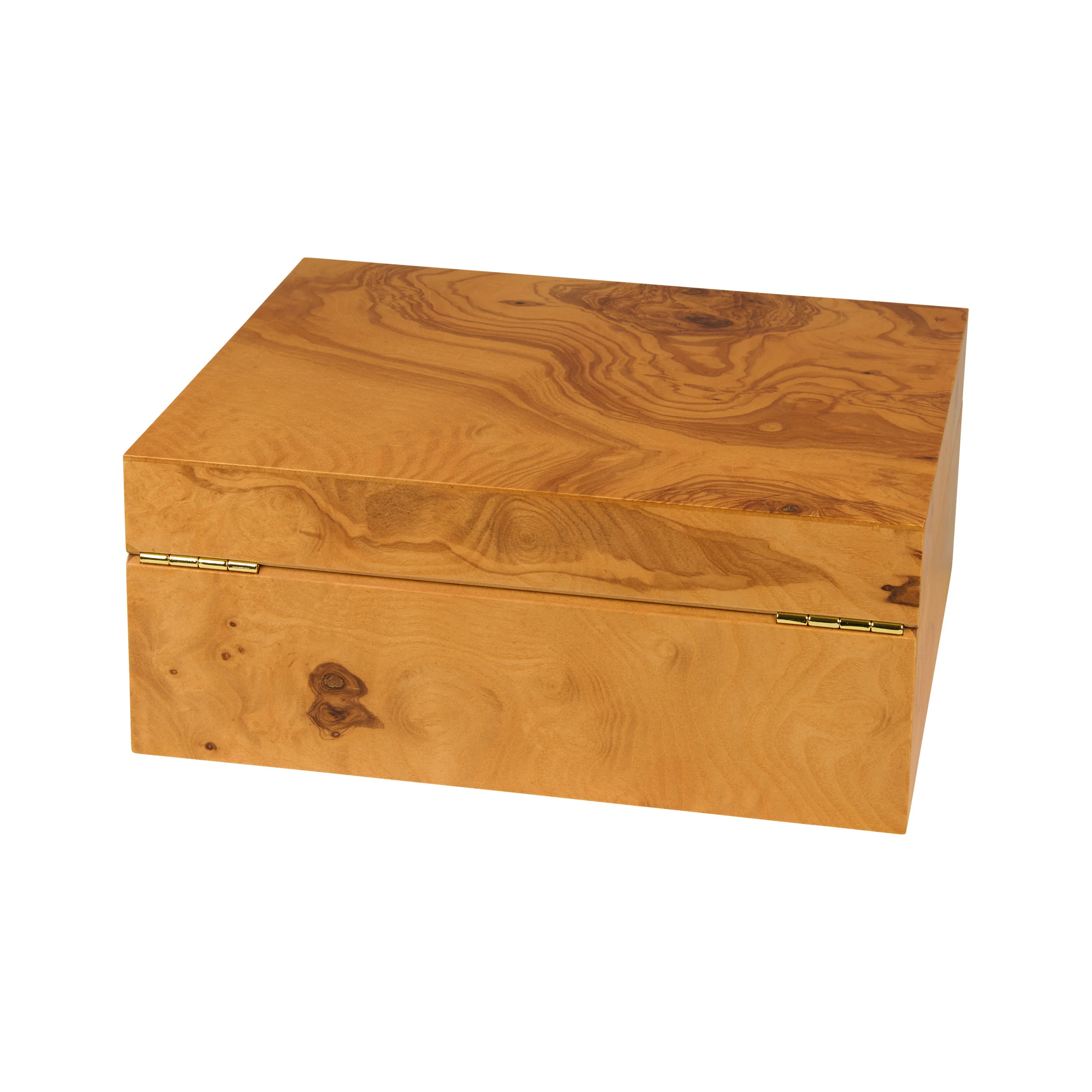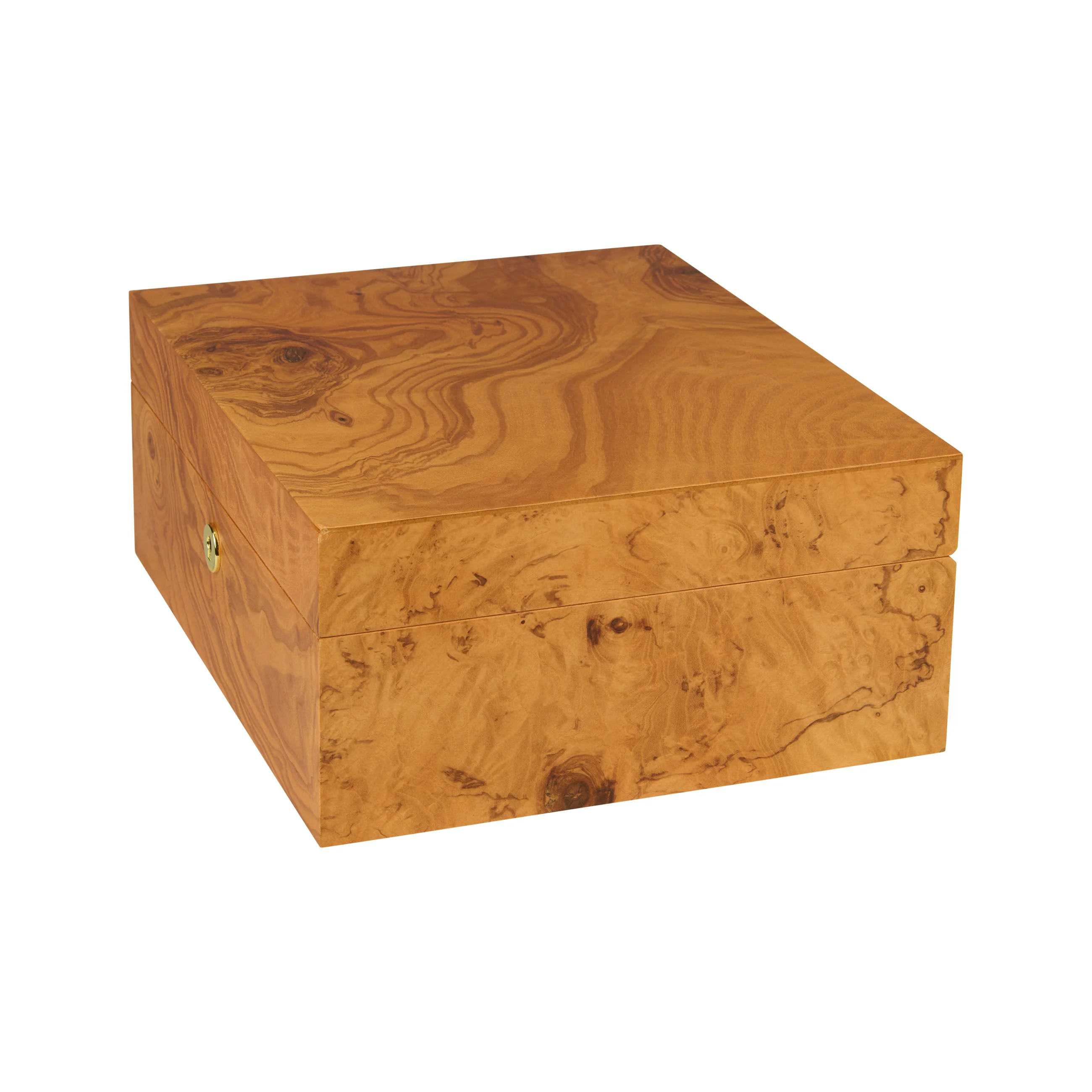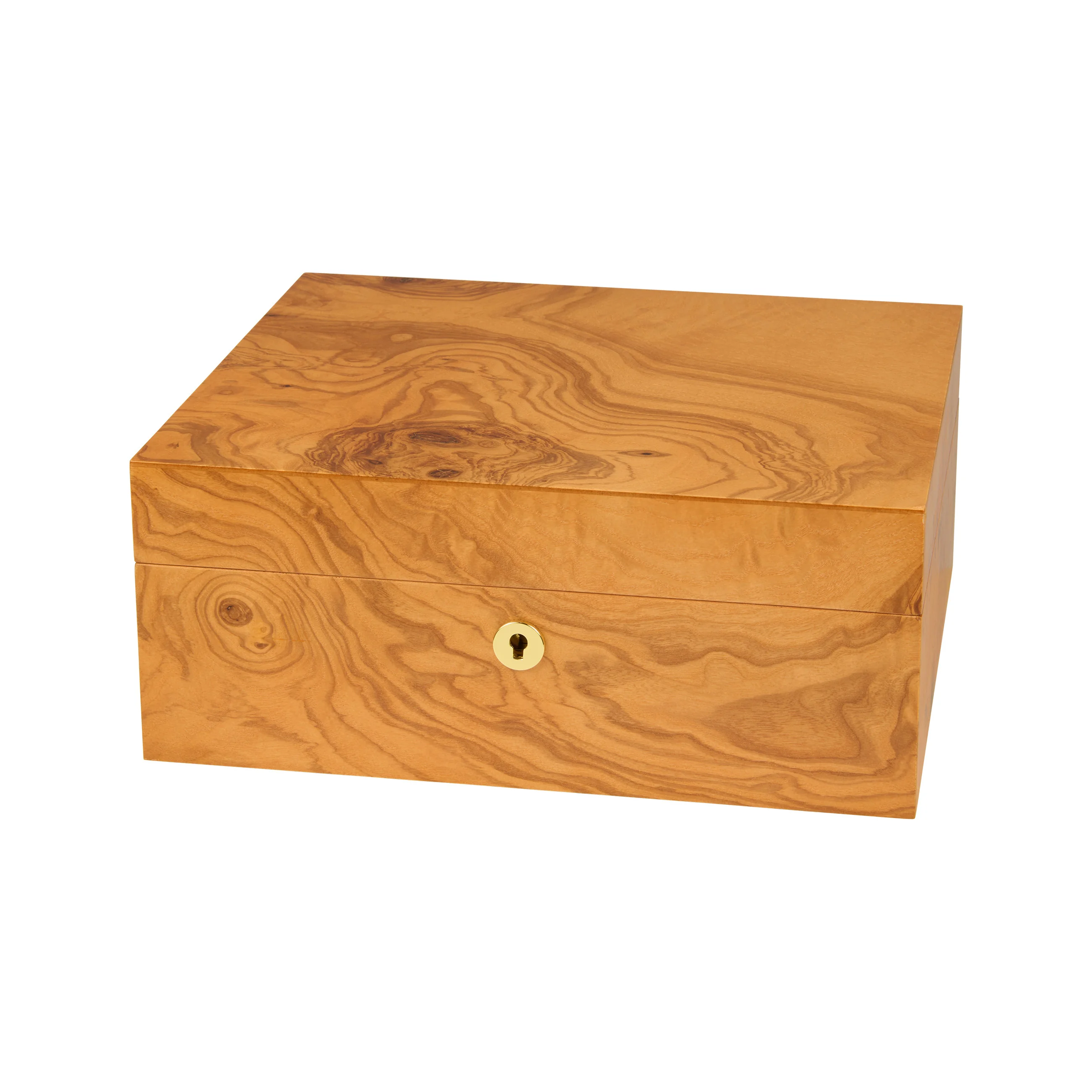 Das Olivenholz überzeugt durch seine charakteristische Maserung mit honiggelben bis goldbraunen Farbtönen, durchzogen von dunklen, fast schokoladenfarbenen Adern. Dank seiner warmen Ausstrahlung fügt sich der Humidor harmonisch in nahezu jedes Ambiente ein. Humidore der Größe Medium fassen bis zu 75 Zigarren und bieten damit ausreichend Platz für Ihre Zigarrensammlung.