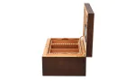Der Matera Deluxe fällt zunächst durch sein mattes, gemasertes Walnussfurnier ins Auge, das nicht nur optisch, sondern auch haptisch ansprechend ist. Ein Schloss und ein Schlüssel verleihen dem wunderbar, schlichten Äußeren einen Hauch von Luxus, während sich der Deckel öffnet und ein elegantes Innenleben voller innovativer Details offenbart. DieVerkleidung aus gedämpftem, spanischem Zedernfurnier ist mit den RibTech-Belüftungsrippenvon adorini versehen , die für eine bessere Luftzirkulation im gesamten Humidor sorgen.