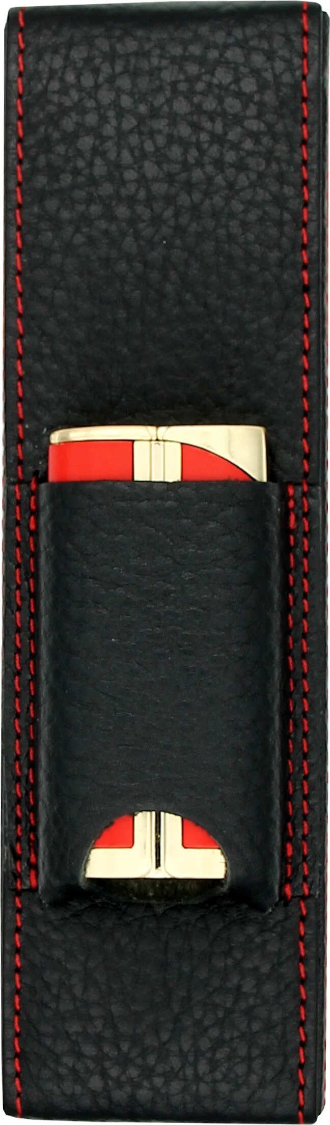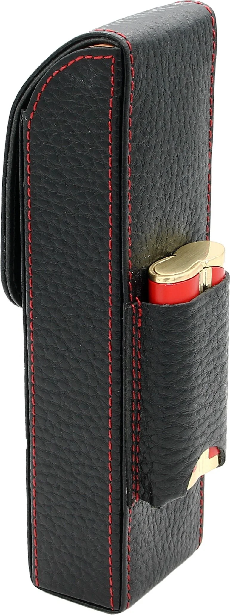 adorini Taschen Zigarrenetui Schwarz mit roter Ziernaht mit Tasche für Zubehör