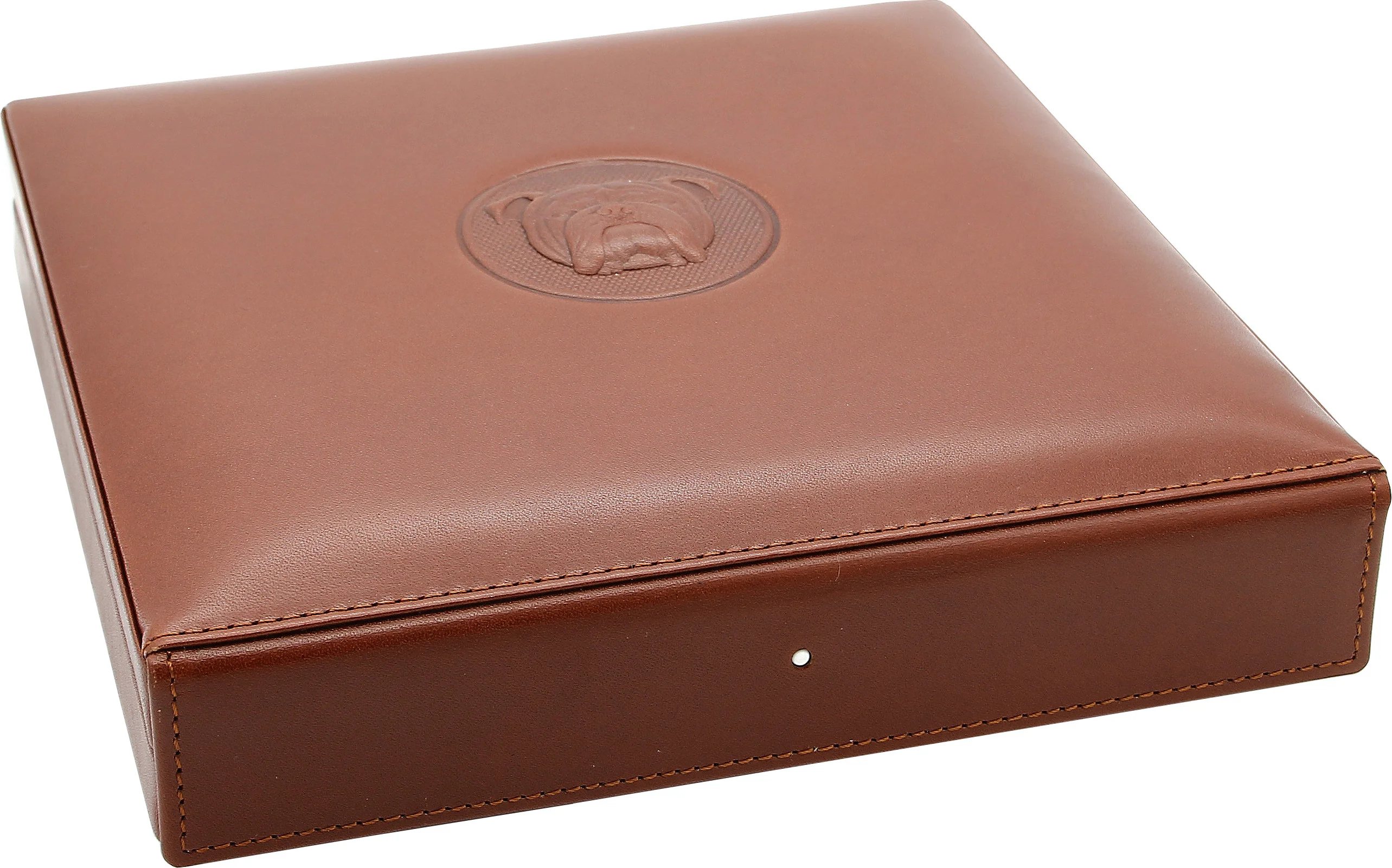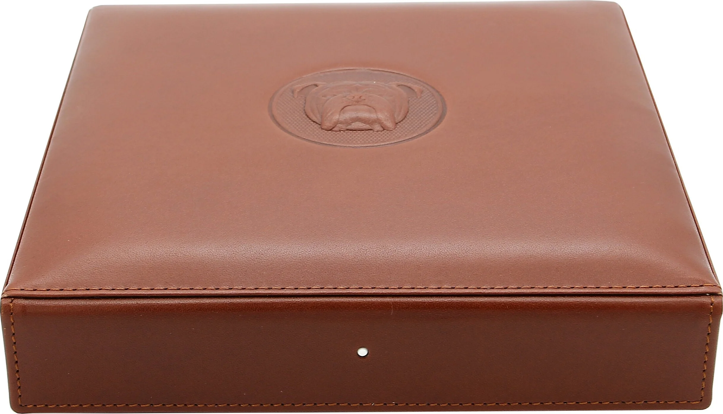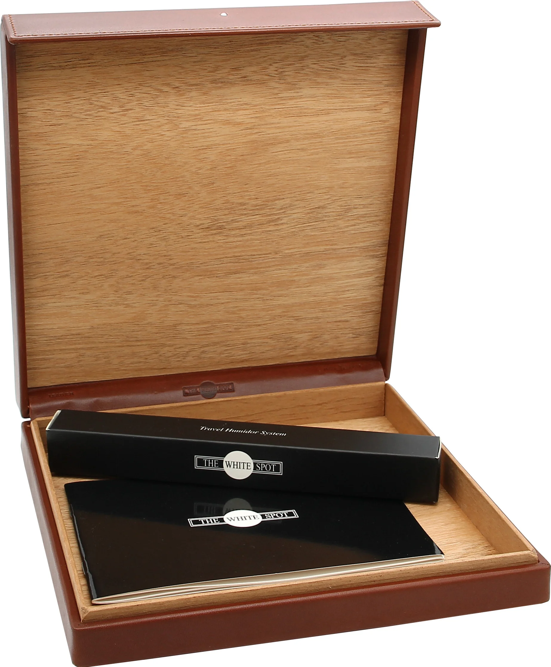 Der elegante Reisehumidor in braun der renommierten englischen Traditionsmarke Dunhill ist der perfekte Begleiter für unterwegs. Überzogen mit feinstem Leder aus Spanien und innen hochwertig mit Holz ausgekleidet, bietet er Platz und Schutz für circa 10 Zigarren. Der Verschluss ist ein unter dem Leder versteckter Magnetverschluss. Die im Leder eingeprägte Bulldogge ist ein unverkennbares Markenzeichen von Dunhill, ebenso wie der berühmte White Spot auf der Front des Humidors. Ein edler Reisehumidor, der Ihre Zigarren stilvoll schützt und sich auf allen Reisen und Trips als zuverlässiger Begleiter bewährt.