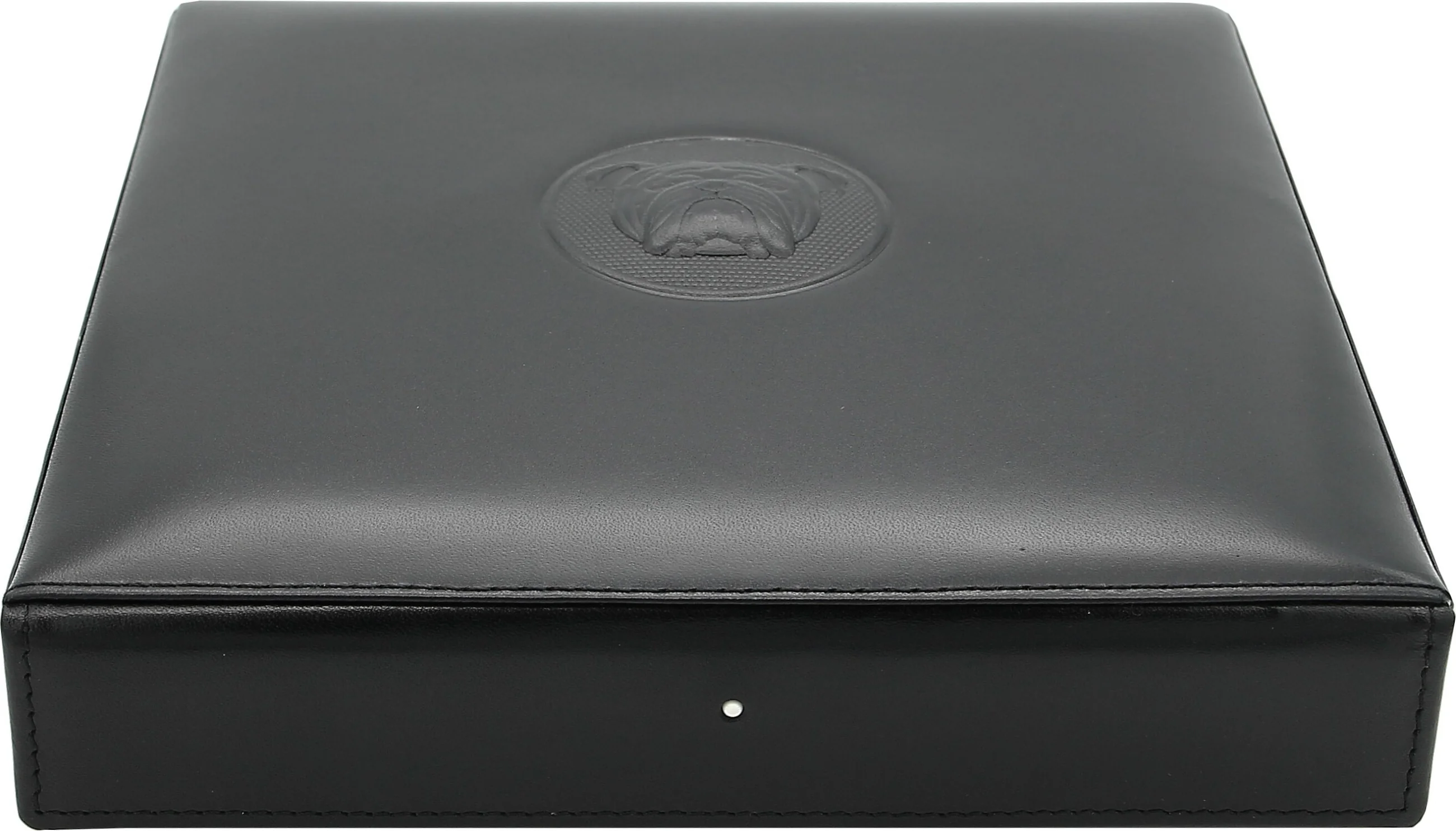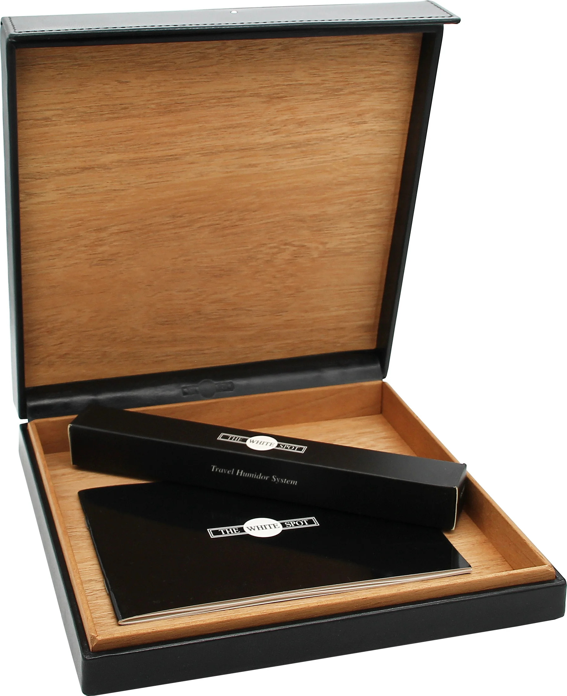 Der elegante Reisehumidor in Schwarz der renommierten englischen Traditionsmarke Dunhill ist der perfekte Begleiter für unterwegs. Überzogen mit feinstem Leder aus Spanien und innen hochwertig mit Holz ausgekleidet, bietet er Platz und Schutz für circa 10 Zigarren. Der Verschluss ist ein unter dem Leder versteckter Magnetverschluss. Die im Leder eingeprägte Bulldogge ist ein unverkennbares Markenzeichen von Dunhill, ebenso wie der berühmte White Spot auf der Front des Humidors. Ein edler Reisehumidor, der Ihre Zigarren stilvoll schützt und sich auf allen Reisen und Trips als zuverlässiger Begleiter bewährt.