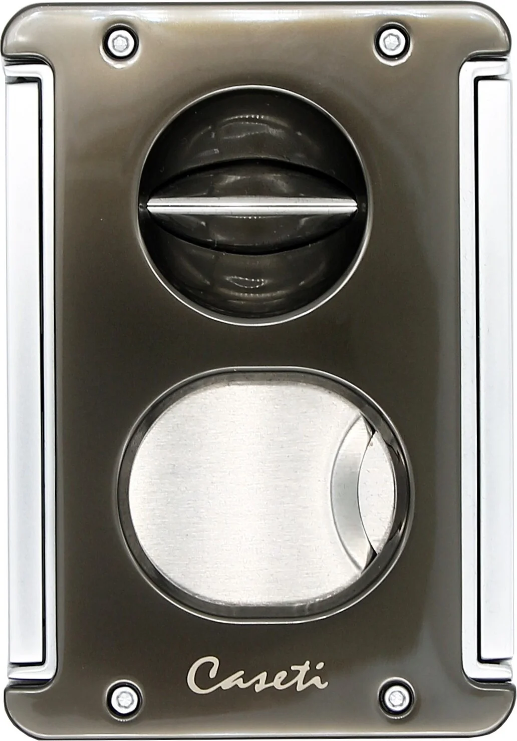 Bereichern Sie Ihr Zigarrenerlebnis mit dem Caseti Zigarrenabschneider 3 in 1 in mattem Grau mit silbernen Elementen. Dieses praktische Accessoire richtet sich an verschiedene Vorlieben von Zigarrenliebhabern und vereint einen klassischen Schnitt, einen V-Schnitt und einen Zigarrenbohrer in einem einzigen Werkzeug.