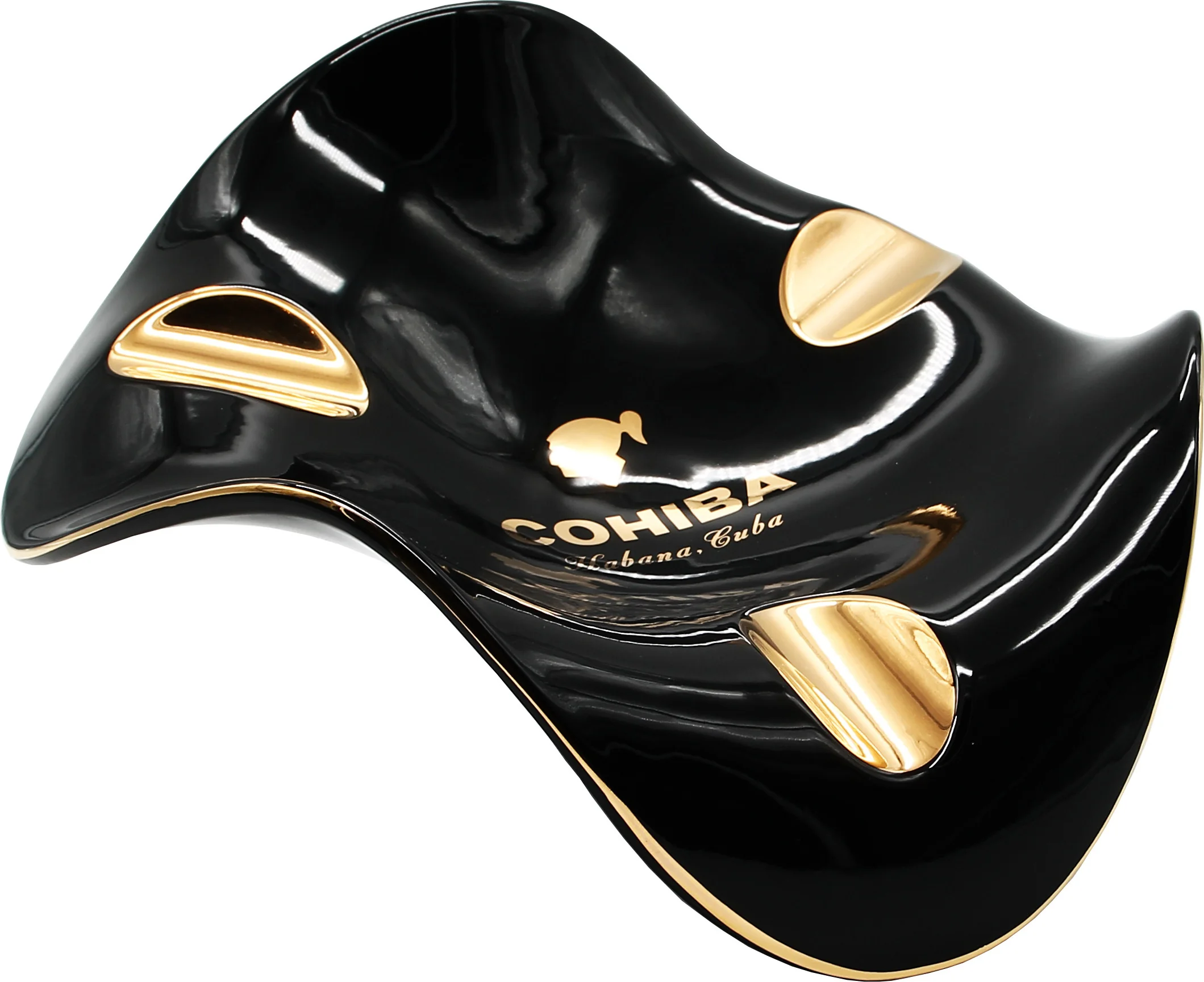 Das Design des Aschenbechers stammt von Nelson Alfonso im Auftrag von Habanos S.A.. Zentral in der Mitte befindet sich das Cohiba Markenlogo in Gold, das die Exklusivität und den Wiedererkennungswert des Stücks unterstreicht. Die Kombination aus Schwarz und Gold sowie die formschöne Gestaltung machen diesen Aschenbecher zu einem eleganten und repräsentativen Accessoire.