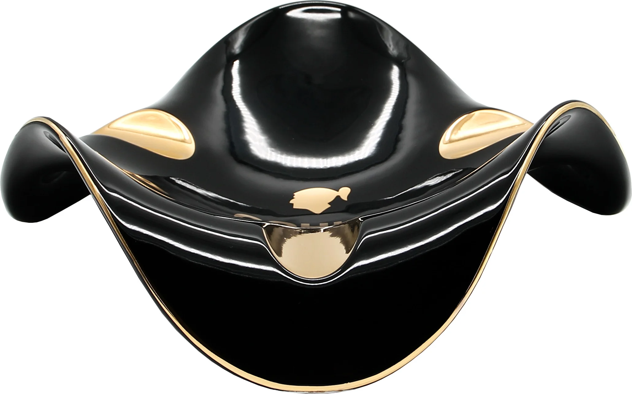 Der Cohiba Aschenbecher in Schwarz mit goldenen Akzenten ist ein außergewöhnliches Accessoire der bekanntesten kubanischen Zigarrenmarke Cohiba. Sein geschwungenes Design verleiht ihm eine besondere Eleganz und macht ihn in jeder Umgebung zum absoluten Blickfang. Drei großzügige Zigarrenablagen bieten Platz für den Genuss in Gesellschaft und verbinden Funktionalität mit ästhetischem Anspruch.