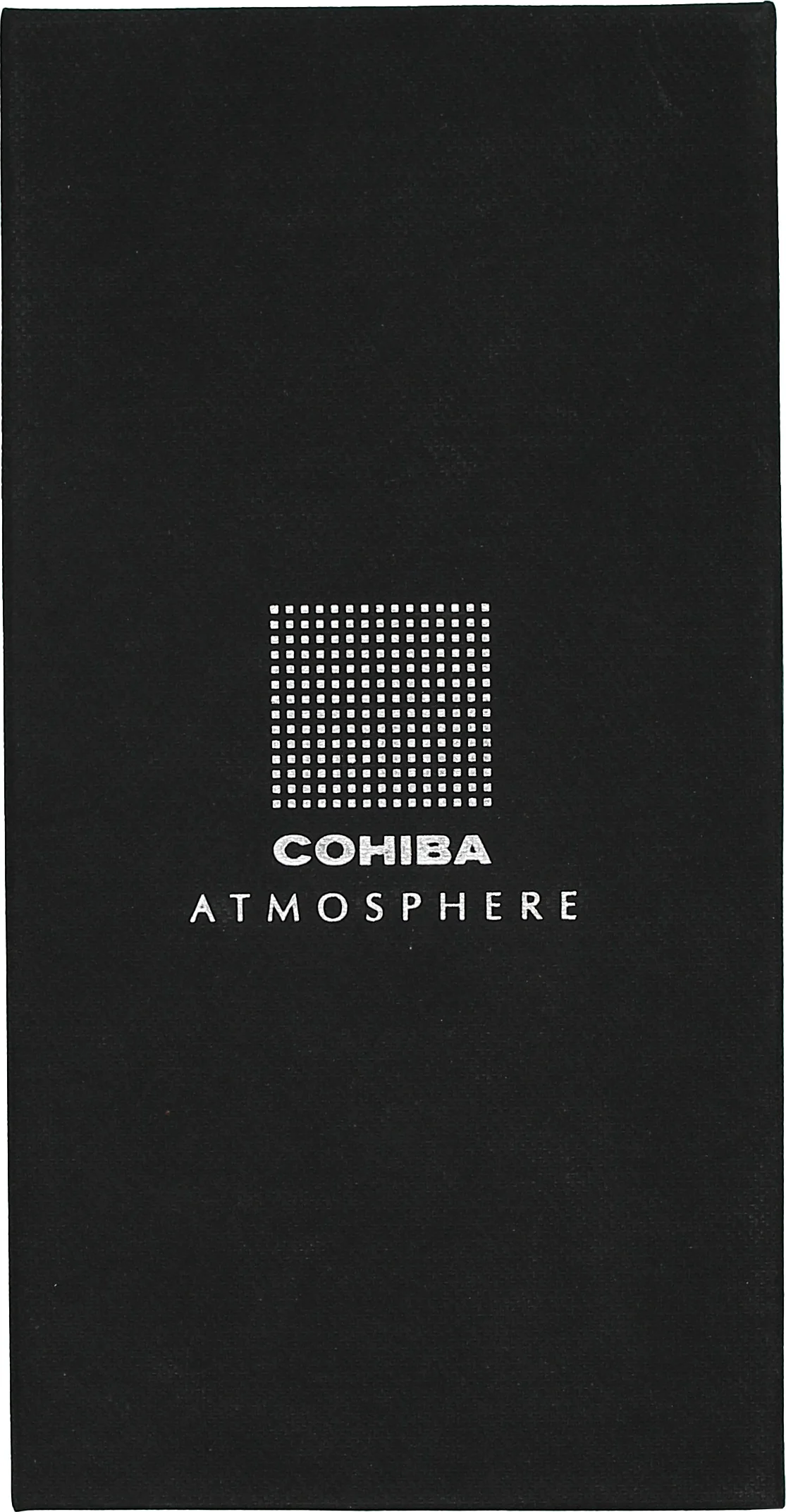Auf der Front sorgt der elegante silberne Cohiba Atmosphere Logodruck für sofortige Wiedererkennbarkeit und verleiht dem Etui eine Aura von Luxus und Authentizität.