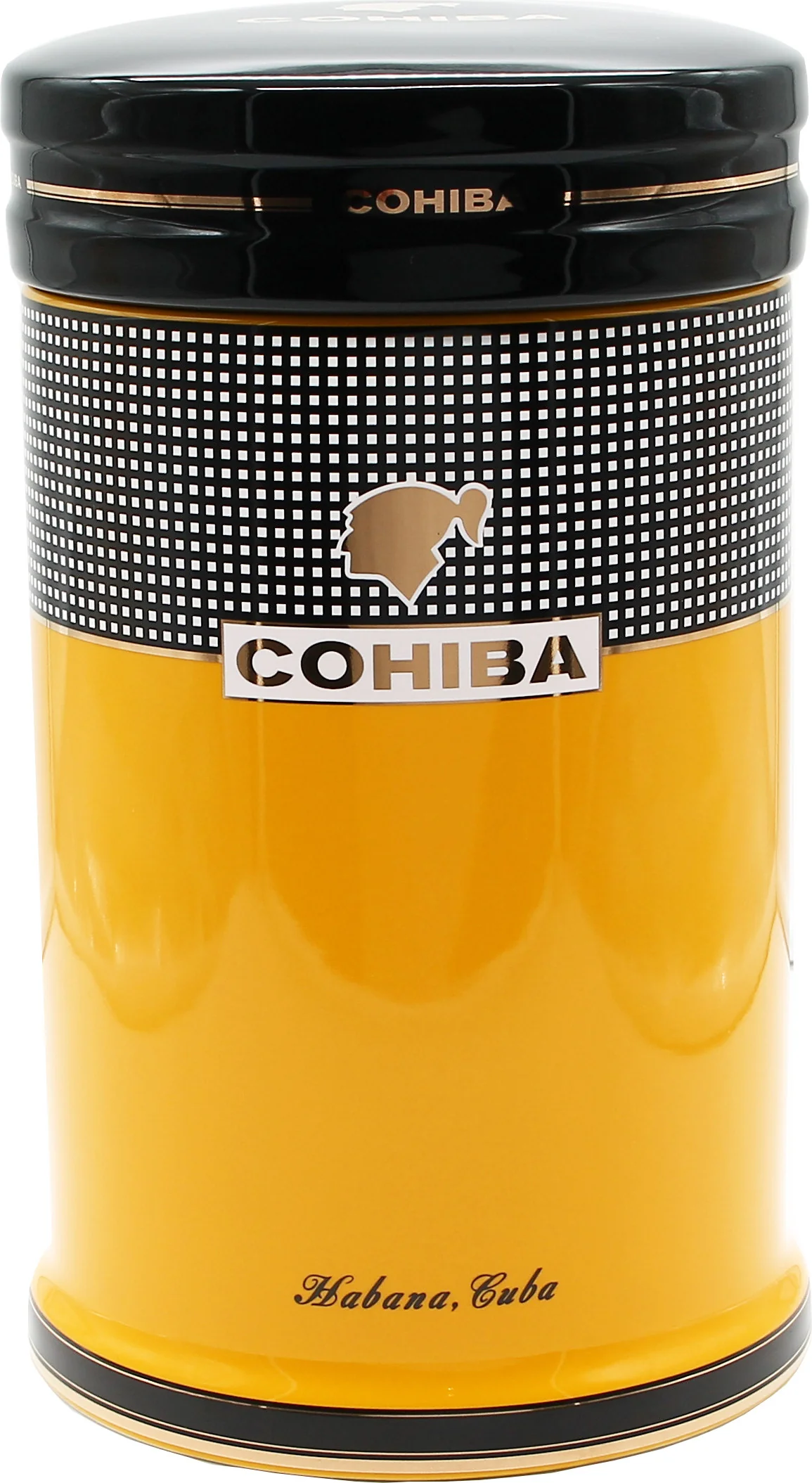 Der Cohiba Porzellanjar ist ein funktionales und zugleich ansprechend gestaltetes Aufbewahrungsgefäß der bekannten kubanischen Zigarrenmarke Cohiba. Er präsentiert sich in den typischen Farben der Marke, bestehend aus Gelb, Schwarz und Weiß, die durch dezente goldene Verzierungen ergänzt werden. Das Zusammenspiel dieser Elemente sorgt für eine klare Wiedererkennbarkeit des Markenstils, ohne aufdringlich zu wirken.