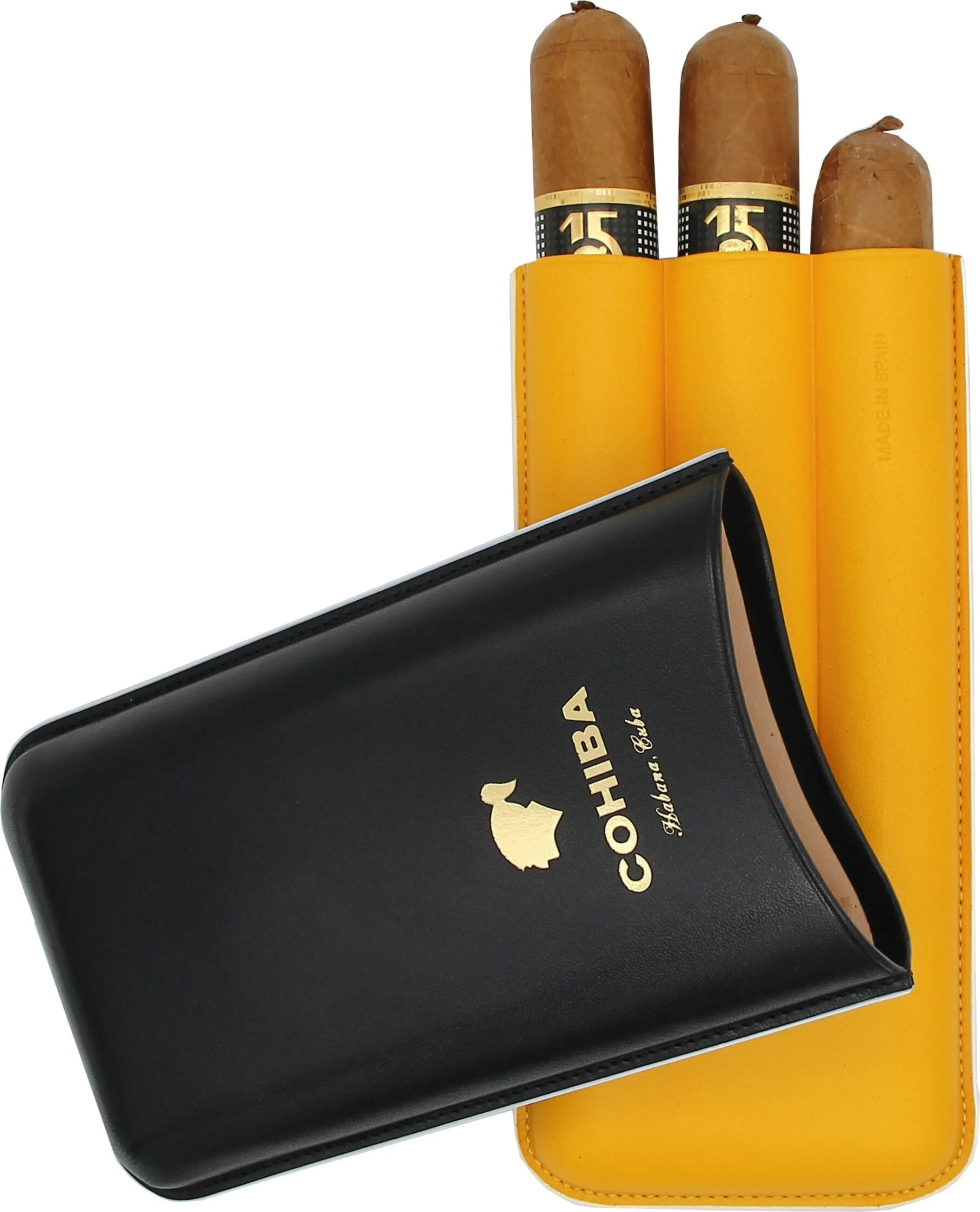 Cohiba Zigarrenetui Leder schwarz, gelb und weiß