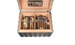 Der Humidor bietet ein geschätztes Fassungsvermögen von ca. 150-175 Zigarren. Auch kleinere Zigarrenkisten finden hier problemlos Platz. Der Innenraum ist clever unterteilt: Eine herausnehmbare Etagere mit Rillen ermöglicht die Lagerung von Einzelzigarren und sorgt gleichzeitig für eine optimale Luftzirkulation in den unteren Bereich. Zudem verfügt sie über einen flexiblen vertikalen Divider zur besseren Organisation. Im unteren Innenraum ist ein weiterer flexibler Trennsteg enthalten, sodass der Stauraum individuell angepasst werden kann.