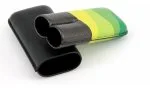 Das Besondere an diesem Etui ist die lebendige Farbgestaltung, die einen Hauch von brasilianischem Flair versprüht. Das äußere Etui aus schwarzem Leder bietet einen Hauch von klassischer Eleganz. Das Innere des Etuis offenbart schwarzes Leder, das sich mit modernen gelben und grünen Farbtupfern verbindet.