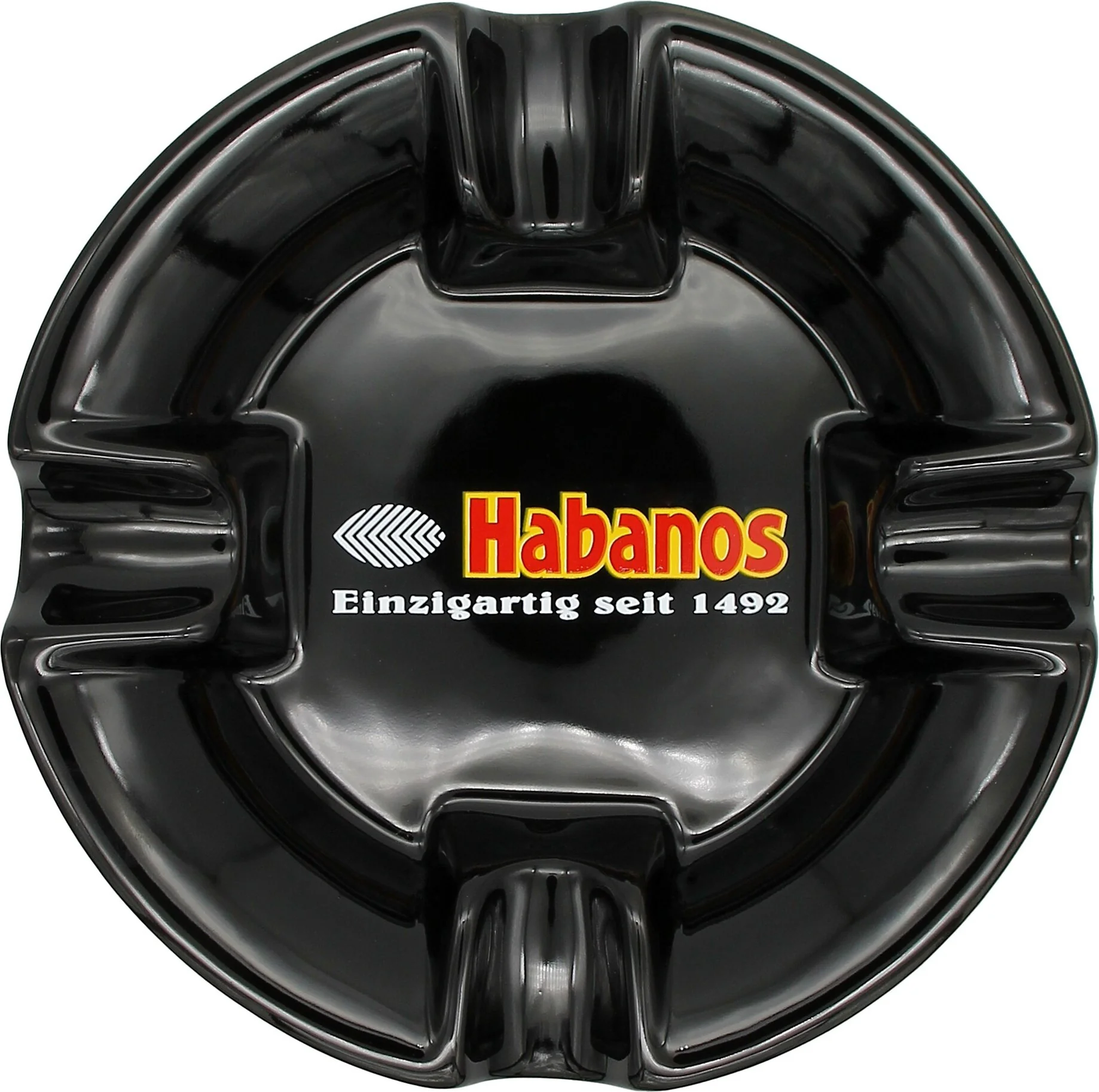 Dieser runde Porzellan-Aschenbecher von Habanos besticht durch seine zurückhaltende schwarze Optik und den deutschsprachigen Schriftzug „Einzigartig seit 1492“, der auf das Gründungsjahr von Habanos verweist und den Aschenbecher ziert. Er eignet sich ideal für den Zigarrengenuss in Gesellschaft, da er über vier großzügige Zigarrenablagen verfügt.