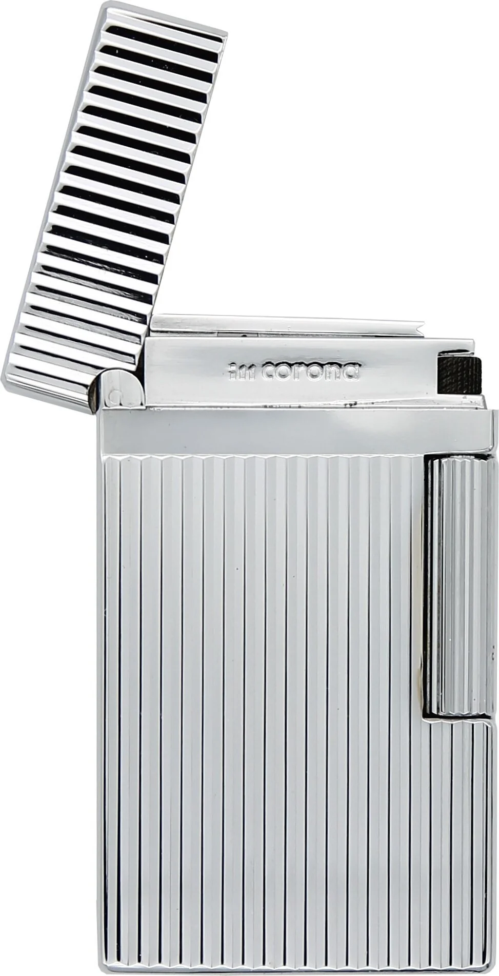 Das IM Corona Double Corona ist ein elegantes Feuerzeug in glänzender Chrom Ausführung, das klassische Formgebung und moderne Eleganz vereint.