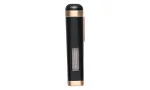 Das Palio Polaris Jet-Feuerzeug in Schwarz und Roségold ist ein leistungsstarkes und modernes Jet-Feuerzeug mit einem eleganten, mattschwarzen Finish und stilvollen Roségold-Akzenten. Mit seinen drei intensiven Jet-Flammen, die sich zu einem kräftigen Brenner vereinen, bietet dieses Feuerzeug eine besonders zuverlässige Zündung für Zigarrenliebhaber. Die Zündung ist durch eine Schutzklappe vor Staub und Flusen abgeschirmt, was die Langlebigkeit und konstante Zündfähigkeit des Feuerzeugs sichert. Der Markenschriftzug von Palio ist auf dem Auslöser auf der Vorderseite angebracht und ermöglicht das einfache Entzünden durch Herunterschieben des Auslösers. Ein großes, gut einsehbares Gasfenster mit Füllstandsanzeige befindet sich auf der linken Seite und sorgt dafür, dass der Füllstand stets leicht kontrolliert werden kann. Natürlich ist das Feuerzeug nachfüllbar und die Flammenintensität kann am Fuße des Feuerzeugs ganz bequem ohne zusätzliches Werkzeug reguliert werden.