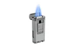 Das Palio Polaris Jet-Feuerzeug in Silber ist ein leistungsstarkes und modernes Jet-Feuerzeug mit einem eleganten, mattsilbernem Finish und stilvollen glänzenden Akzenten. Mit seinen drei intensiven Jet-Flammen, die sich zu einem kräftigen Brenner vereinen, bietet dieses Feuerzeug eine besonders zuverlässige Zündung für Zigarrenliebhaber. Die Zündung ist durch eine Schutzklappe vor Staub und Flusen abgeschirmt, was die Langlebigkeit und konstante Zündfähigkeit des Feuerzeugs sichert. Der Markenschriftzug von Palio ist auf dem Auslöser auf der Vorderseite angebracht und ermöglicht das einfache Entzünden durch Herunterschieben des Auslösers. Ein großes, gut einsehbares Gasfenster mit Füllstandsanzeige befindet sich auf der linken Seite und sorgt dafür, dass der Füllstand stets leicht kontrolliert werden kann. Natürlich ist das Feuerzeug nachfüllbar und die Flammenintensität kann am Fuße des Feuerzeugs ganz bequem ohne zusätzliches Werkzeug reguliert werden.