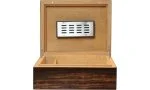 Das matte Lack-Finish bringt die hellen und dunklen Brauntöne des exotischen Makassar-Furniers wunderbar zur Geltung. Die reich, strukturierte Holzmaserung verleiht jedem Dekor eine elegante Ausstrahlung und bietet gleichzeitig Platz für bis zu 35 Zigarren im Corona-Format.