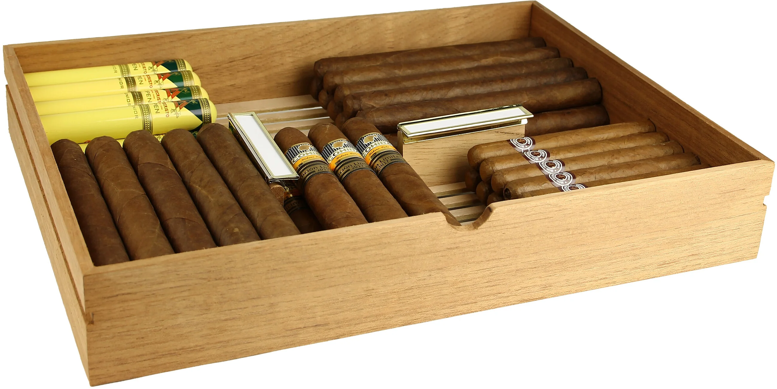 - Zusätzliche Optionen: In unserem Webshop finden Sie auch horizontale und vertikale Extra-Divider zur Unterteilung und Organisation der Schublade. Passende Label-Clips in Gold oder Silber sind ebenfalls erhältlich, um Ihre Zigarren zu beschriften, zu datieren oder nach Herkunft zu sortieren.