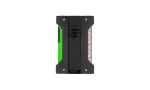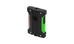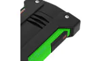- Mattschwarzer Korpus aus Spritzgussmetall mit leuchtend grünem Akzent