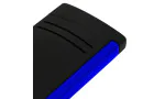 - Design und Materialien:- Mattschwarzer Körper mit leuchtend blauem Druckknopf