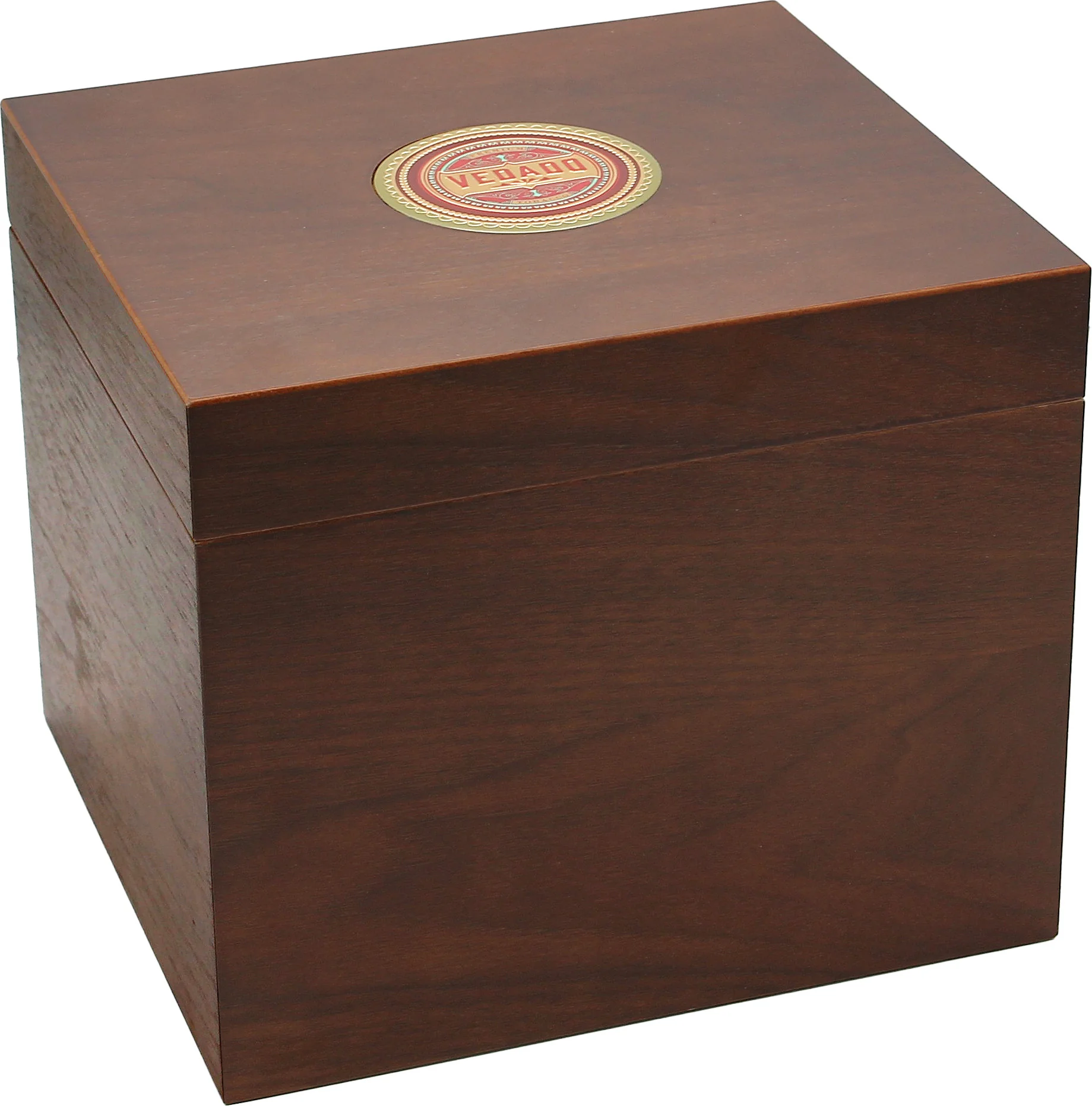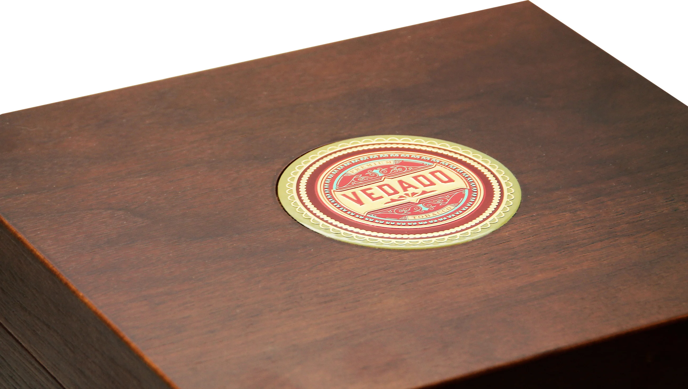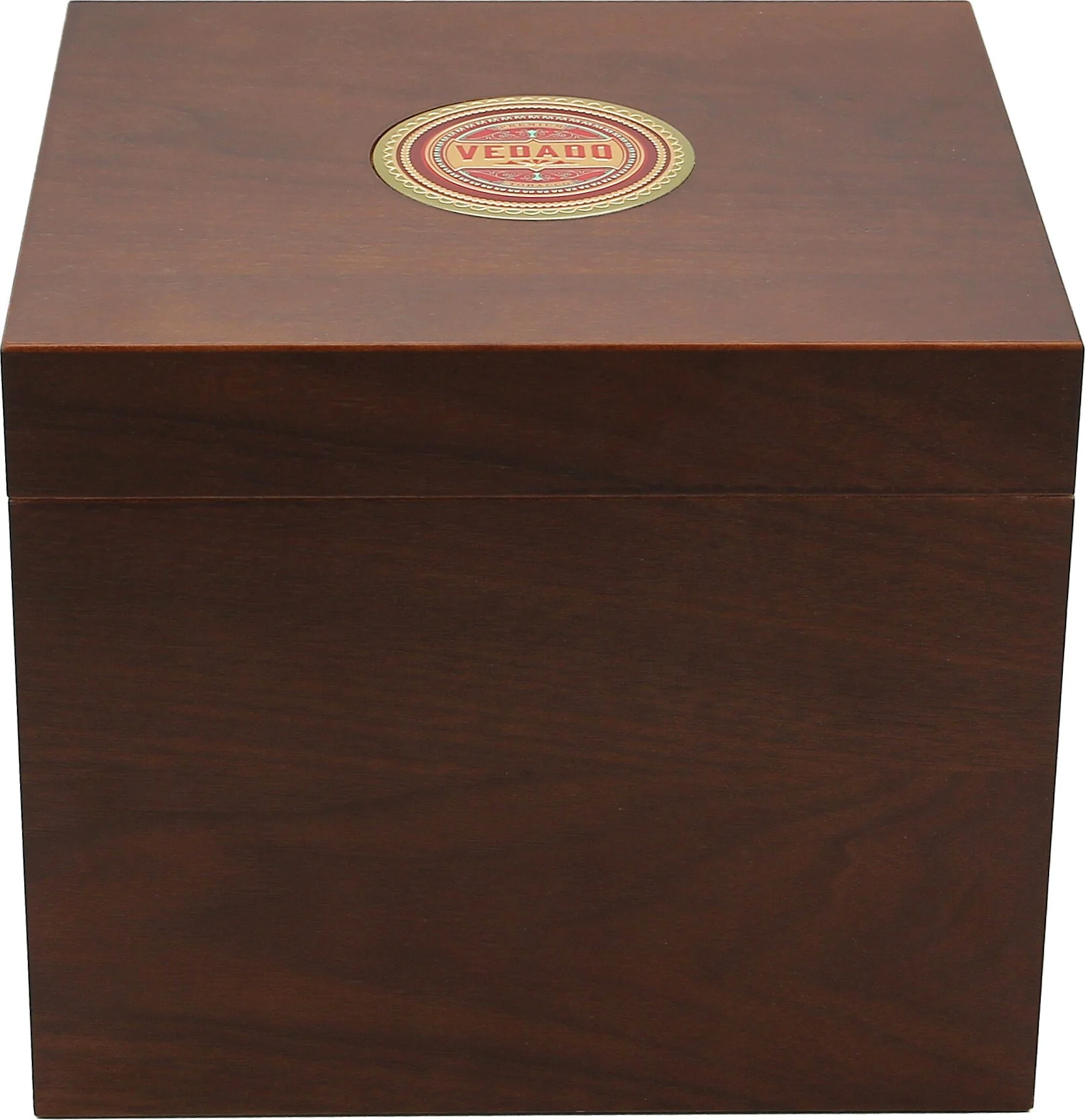 Der Vedado Humidor überzeugt mit seinem edlen Design und einer hochwertigen Verarbeitung. Seine warm braun-roten Töne verleihen ihm eine klassische Eleganz, während die eingelegte Vedado-Plakette auf dem Deckel mit ihrer erhabenen Struktur für ein einzigartiges Detail sorgt.