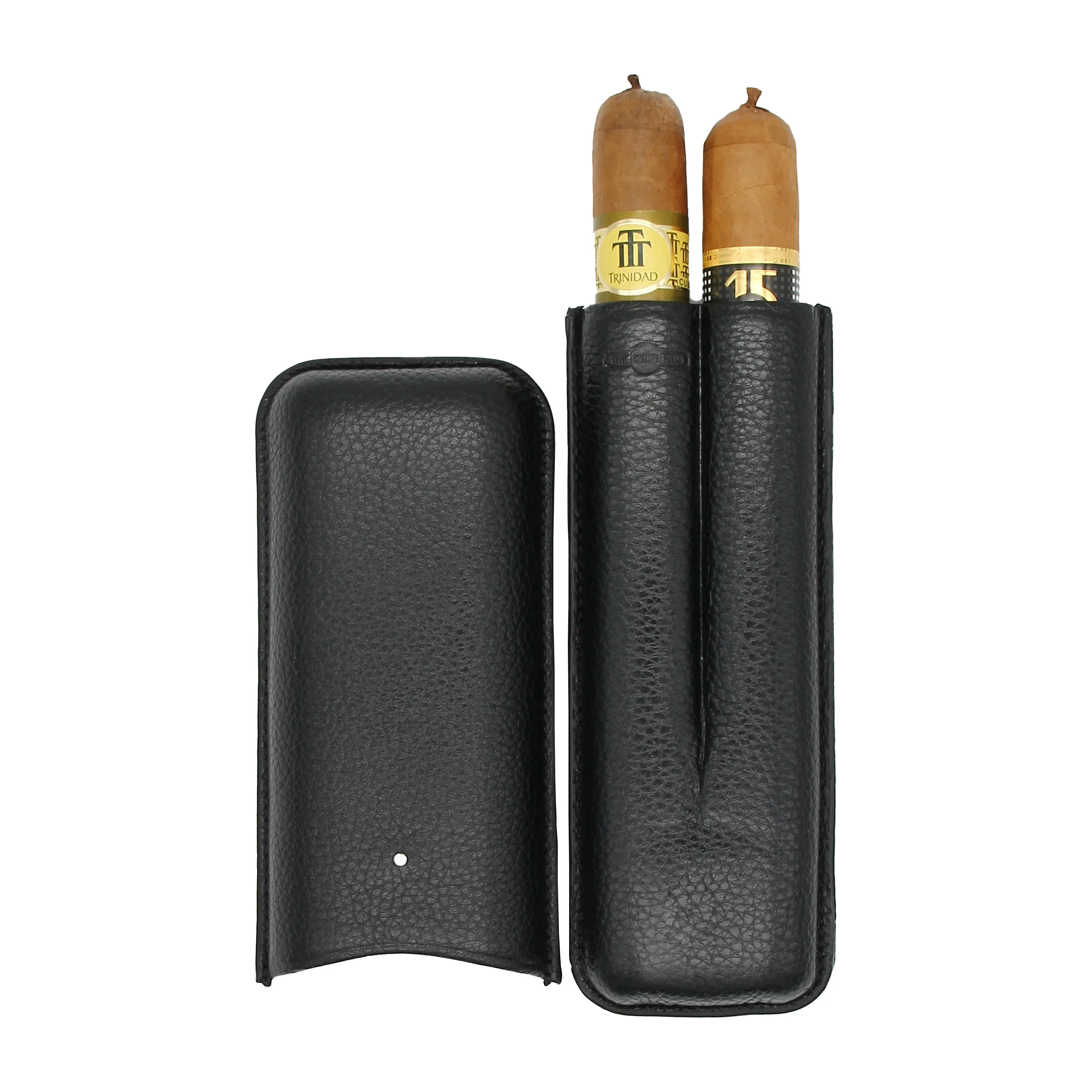 Im Inneren bietet das Etui Platz für zwei Zigarren unterschiedlicher Formate. Praktische Einkerbungen sorgen für sicheren Halt beim Transport. Das Innere ist mit weichem, Leder ausgekleidet und schützt die Zigarren zuverlässig.