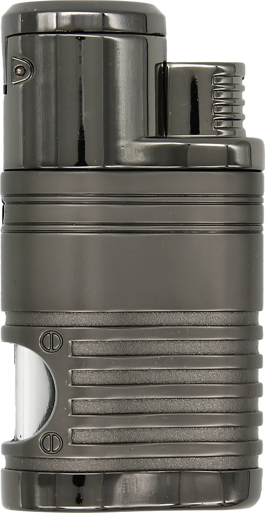 Die vier Jet-Flammen des Feuerzeugs werden mit nur einem Daumendruck aktiviert und verschmelzen miteinander, um die ultimative, windbeständige Flamme zu erzeugen. Mit dieser intensiven Hitze können Sie Ihre Zigarren mit unübertroffener Geschwindigkeit und Effizienz anzünden, unabhängig von lästigen Windböen. Außerdem gibt es einen praktischen Zigarrencutter , der sich aus dem Boden herausklappen lässt, so dass Sie Ihre Zigarren mit diesem einen, leicht zu transportierenden Tool schneiden und auch anzünden können.