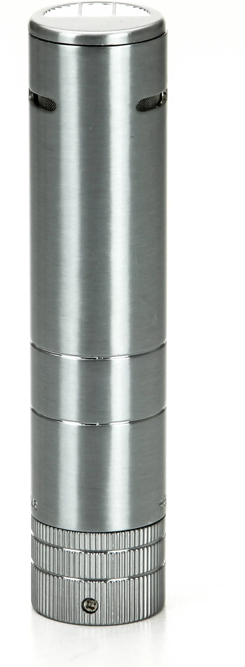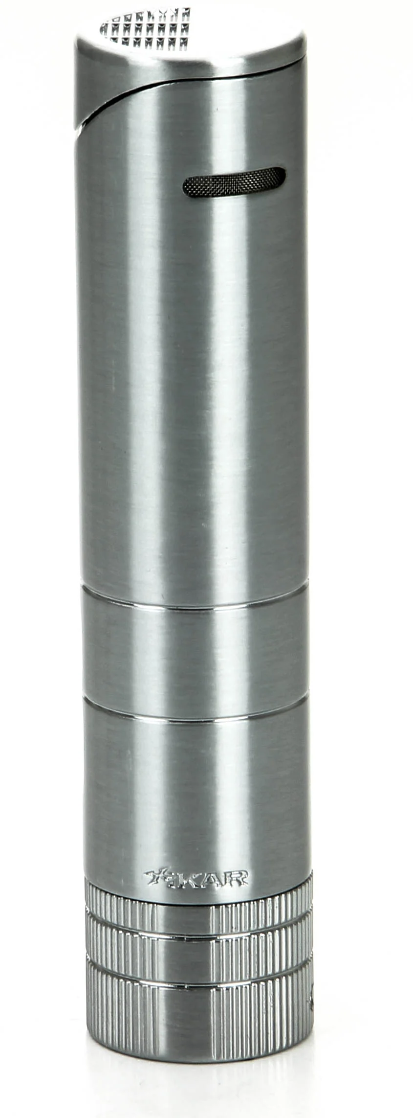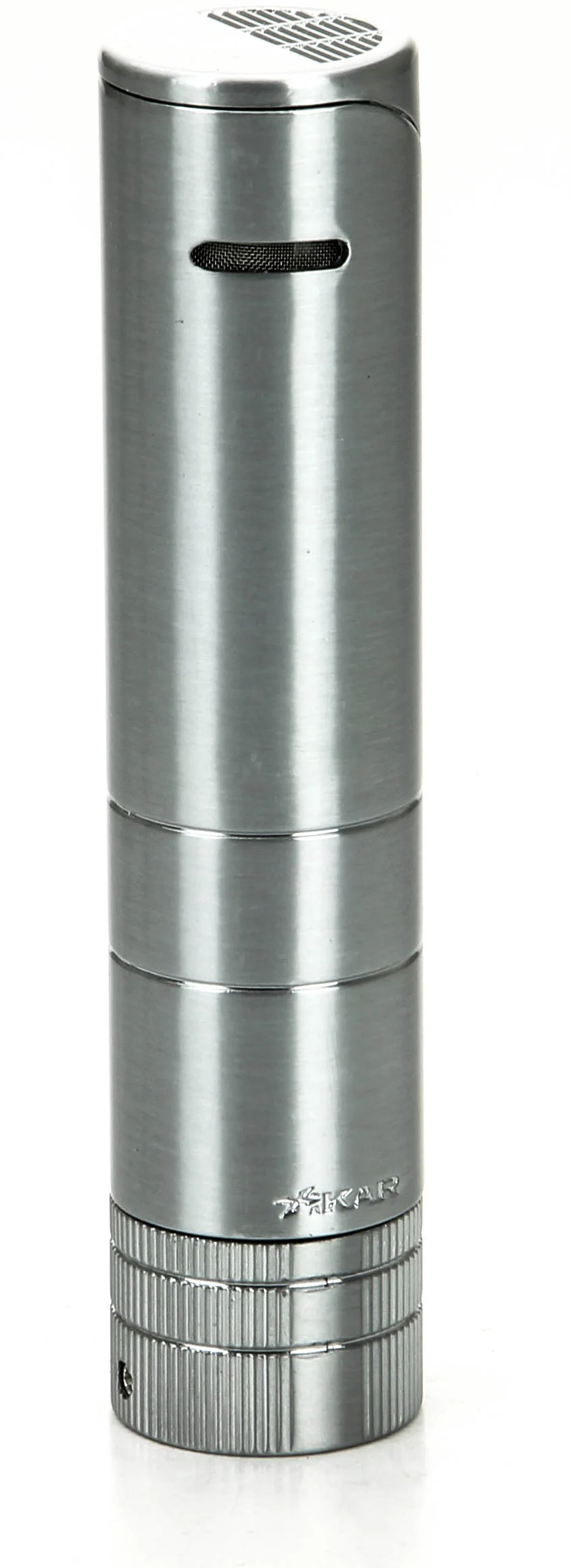 Das Xikar 5x64 Turrim Feuerzeug Silber zieht mit seinem silbernen Finish und seinem raffinierten, runden Design die Aufmerksamkeit auf sich. Mit einer Größe von 5" x 64 lässt sich das Feuerzeug leicht in einem Reise-Zigarrenetui verstauen, dient aber auch als wundervoll, stilvolles Tischfeuerzeug.