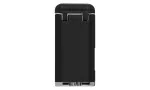 - Mattschwarzes Design mit stilvollen Chromakzenten und einem fein strukturierten Linienmuster.