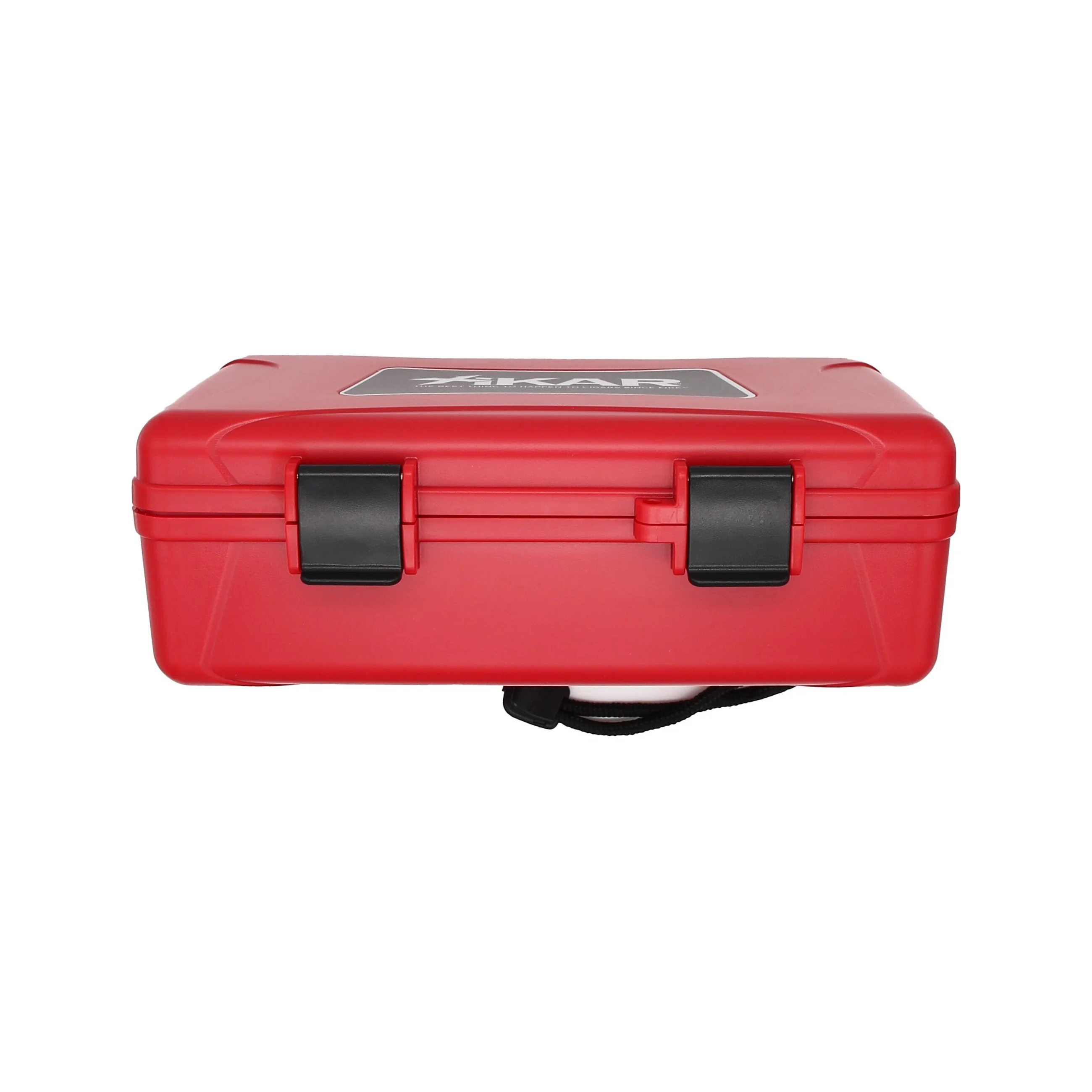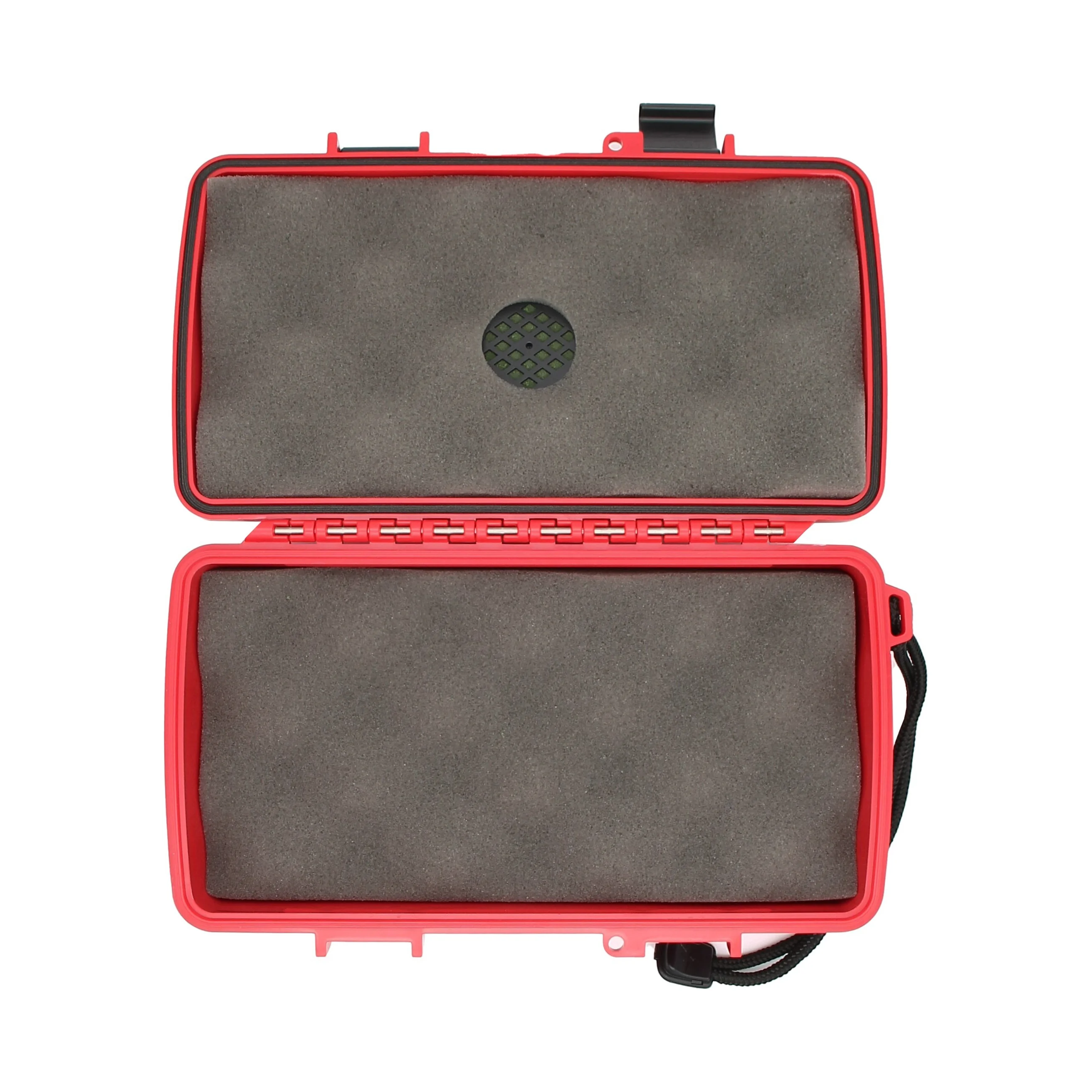 Dieser klassische Reisehumidor, hier in aufregendem rot, ist aus bruchsicherem ABS-Kunststoff gefertigt, so dass Sie sich keine Sorgen machen müssen, dass der Inhalt beschädigt wird. Die Scharniere aus rostfreiem Stahl und die stabilen Verschlüsse sorgen für einen perfekten luft- und wasserdichten Verschluss. Ein Verschlussring ermöglicht das Anbringen eines Schlosses, so dass Sie sicher sein können, dass Sie der Einzige sind, der Ihre Schatztruhe öffnet.