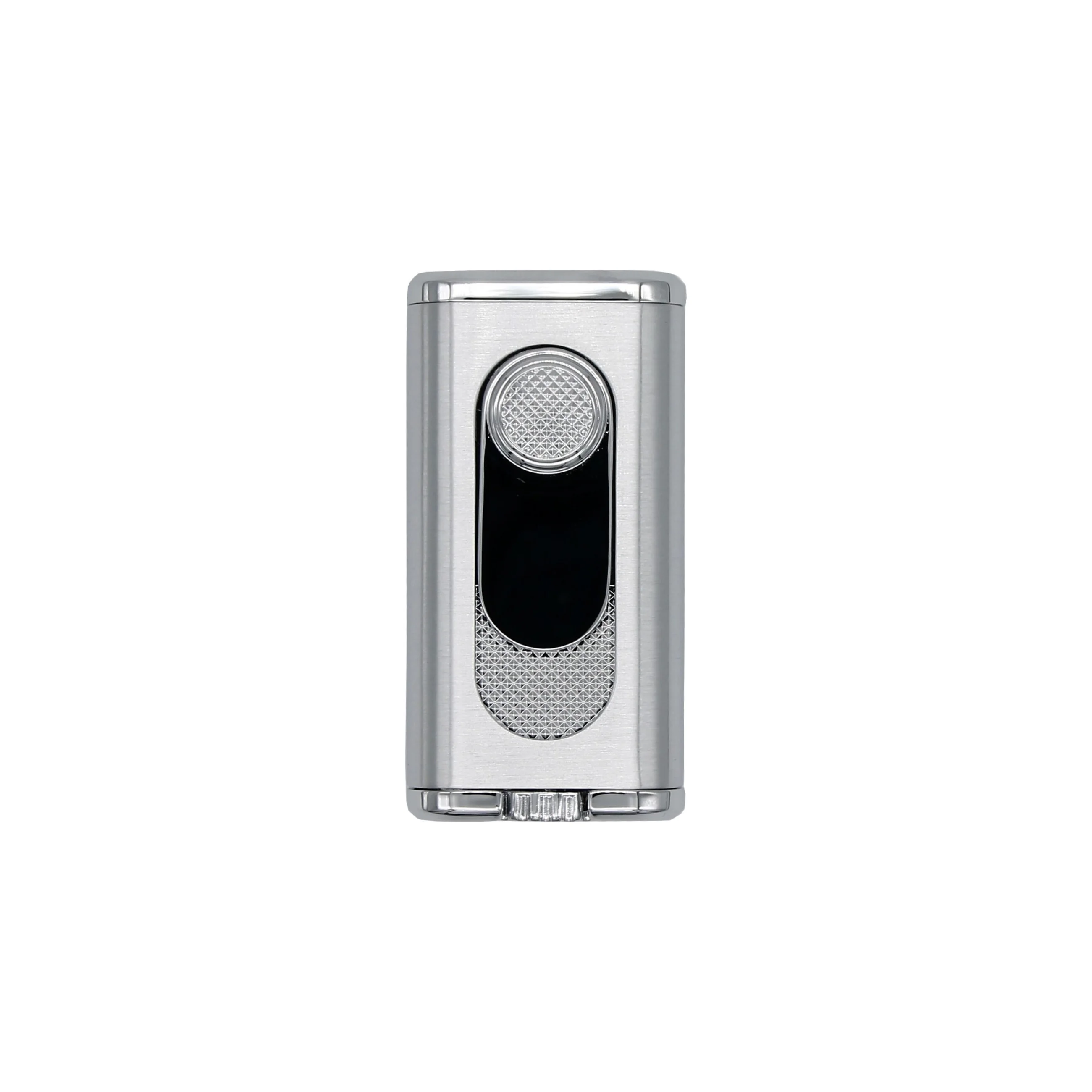 Das attraktive Feuerzeug hat ein silbernes und verchromtes Finish mit strukturierten, rautenförmigen Akzenten, die auch den herunterschiebbaren Zündauslöser zieren. Dieser elegante und moderne Look macht das Verano zu einer großartigen Wahl für Veranstaltungen, bei denen alle Augen auf Sie gerichtet sind.