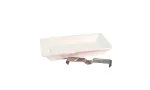 - Ablagen: Eine fest integrierte Keramikablage und eine flexible Metallablage